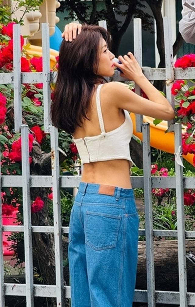 하지원은 최근 자신의 SNS에 하얀 크롭톱 상의에 청바지를 매치한 일상 사진을 공개했다. 장미가 핀 담장에 기대선 채 포즈를 취한 사진 속에서 하지원은 직각 어깨와 가녀린 허리 라인을 자랑했다.