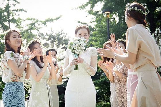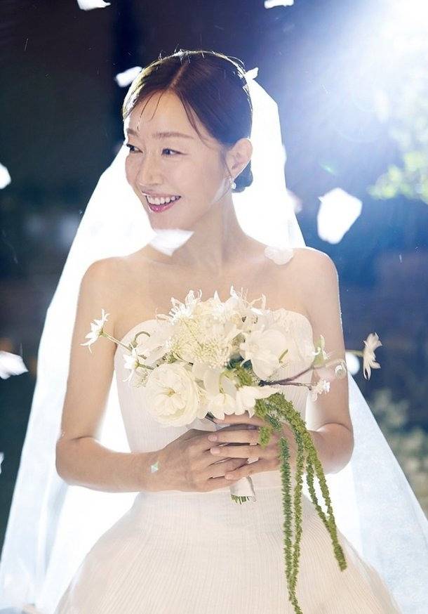 공개된 사진 속 엄지원은 튜브톱 스타일의 웨딩드레스를 입고 환한 미소를 지으며 부케를 들고 있다. 깔끔한 핏감과 정갈하게 잡힌 주름 디테일이 돋보이는 드레스와 함께 기품 넘치는 모습을 선보였다.